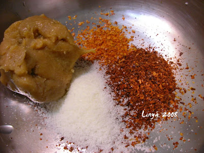 糖50g、麥芽糖100g(省略)、韓國辣椒粉125g、