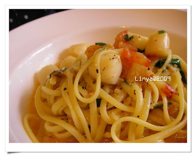 Tinyi則是選用了蒜味紅花橄欖油+細麵+季節海鮮