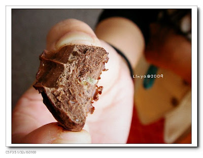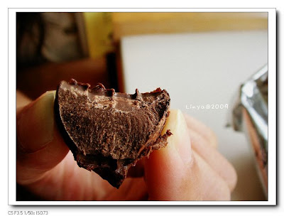 與原味松露巧克力不同,太妃糖口味裡頭有糖塊