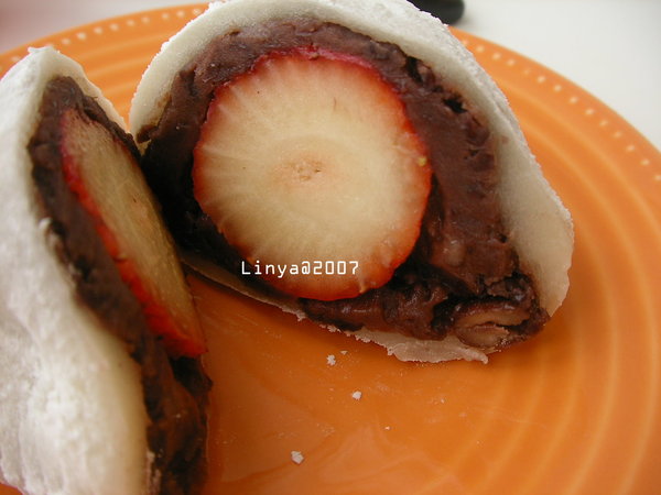 用的是偏酸的草莓,與紅豆泥搭配起來不至太甜