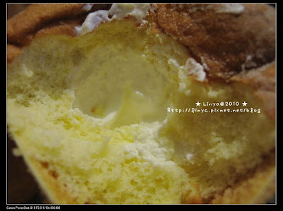 表皮有些龜裂,不過仍舊可辨上頭的洞是為了將奶油注入而產生的。
