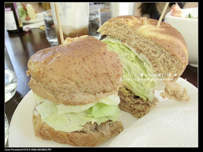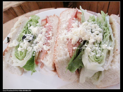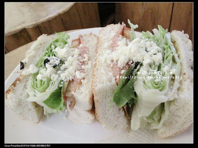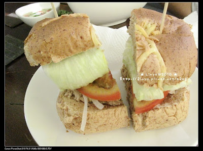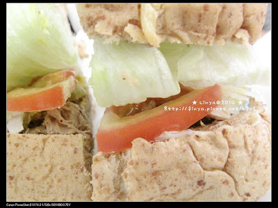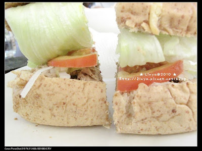 高度也是很高吶,裡頭除有生菜、蕃茄外,看來應該也有鮪魚才是。