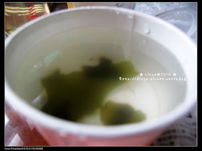海帶芽湯本身沒什麼味道,沒有薑絲香氣,就是純粹海帶芽的味道