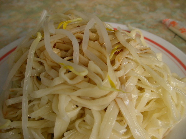 純粹的白麵,放上些許豆芽,拌上些許醬油